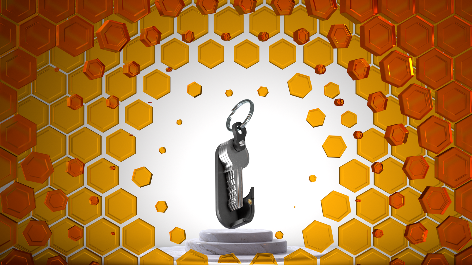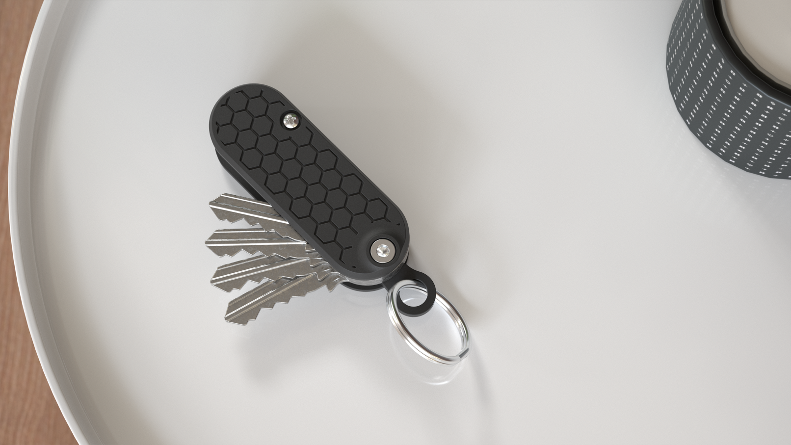The Key Keeper is our own product. Designed to protect the items in your pockets from rattling keys. It was inspired by a Swiss army knife and made to be durable and strong.